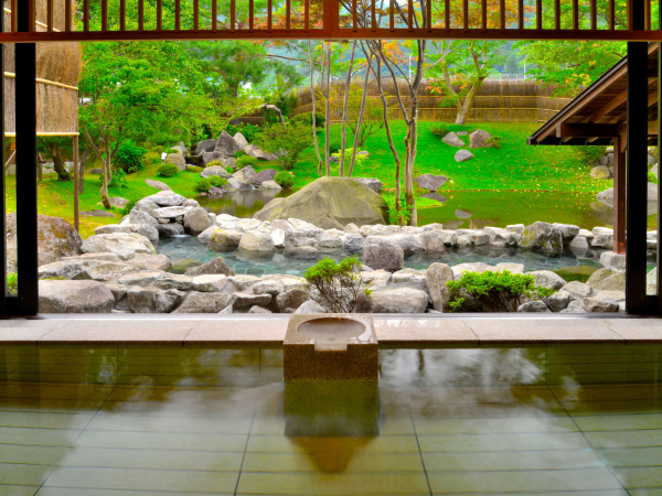 가이드가 마츠노이 온천호텔은 정원이 아름답고 바깥 경치를 보며 온천욕을 할 수 있는 노천탕이 일품이라고 안내하였기에 아침 식사를 하기 전에 정원에 있는 노천탕으로 갔다.